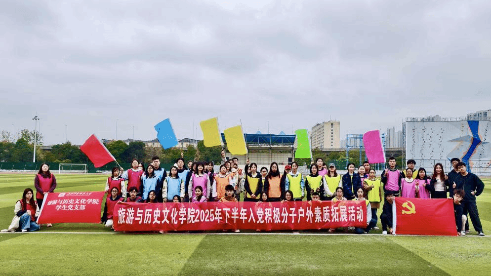 为深入学习贯彻党的二十大精神,凝聚红色力量,传承红色基因,11月9日上午,旅游与历史文化学院在红角洲校区田径场举办2025年下半年入党积极分子培训班户外素质拓展活动。
