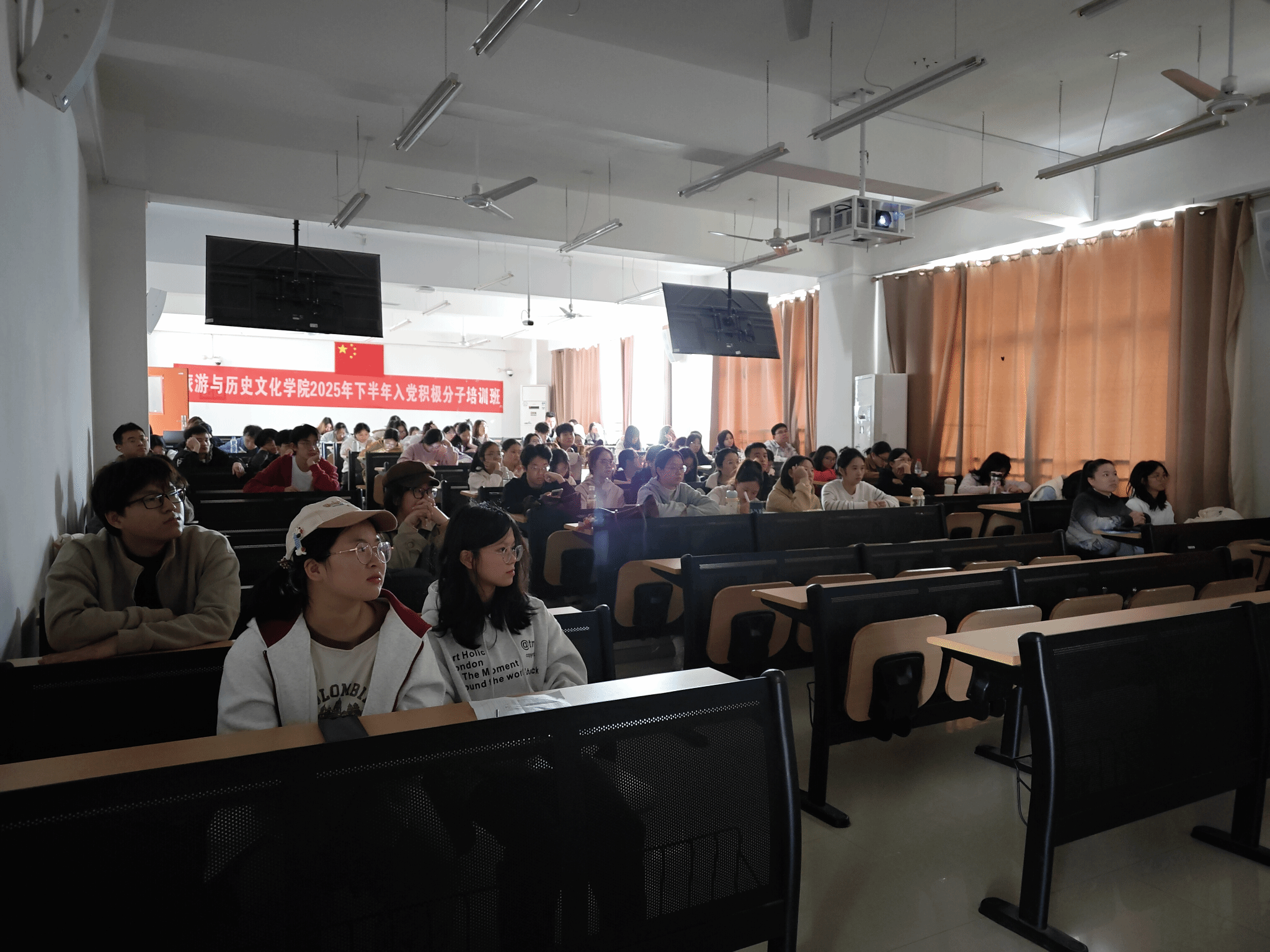 为纪念中国人民抗日战争暨世界反法西斯战争胜利八十周年,进一步弘扬爱国主义精神,11月11日下午,旅游与历史文化学院组织2025年下半年入党积极分子培训班学员在W1402教室开展红色观影活动。