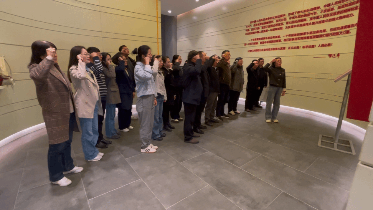 在庄严肃穆的纪念馆内,全体党员重温入党誓词。誓言铿锵有力,更加坚定了党员们“不忘初心、牢记使命”的政治信念。