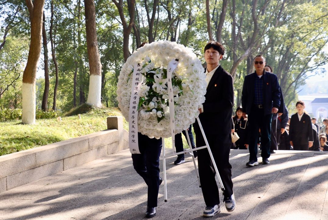 在方志敏烈士墓前,学生党员代表向烈士敬献花篮。全体师生肃立默哀,向方志敏烈士三鞠躬,以表达对烈士最崇高的敬意。随后,师生们缓步绕行烈士墓,认真瞻仰刻满烈士生平事迹的碑文,深情追思革命烈士的丰功伟绩。