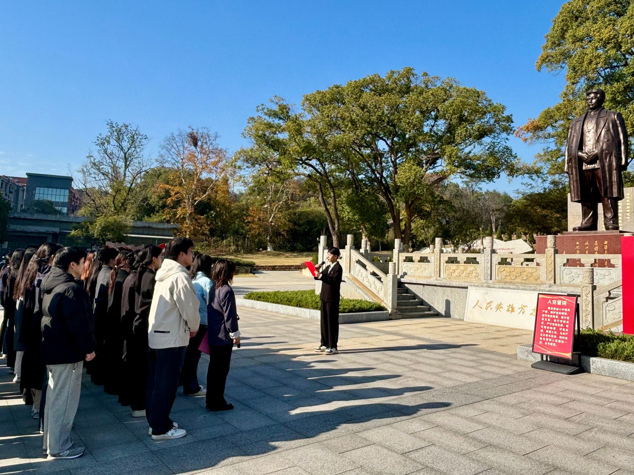 在庄严肃穆的方志敏烈士雕像前,师生面对党旗,重温入党誓词,以铮铮誓言表达对革命先烈的崇高敬意与深切追思。随后,新发展的学生预备党员深情诵读方志敏烈士在狱中写下的《可爱的中国》,字字铿锵,情真意切,令在场师生深受触动。