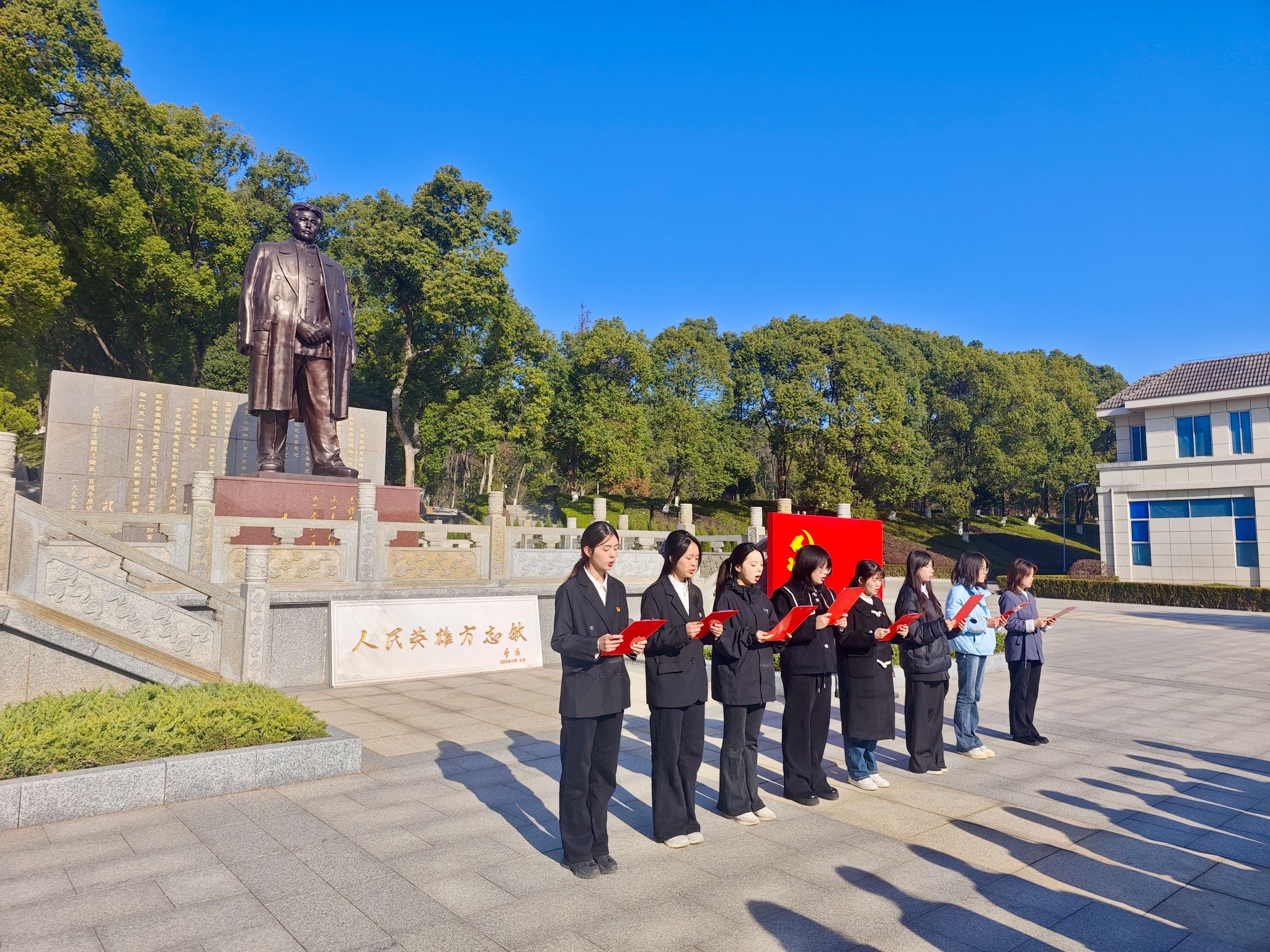为深切缅怀革命先烈,加强党员的党性教育,11月29日,旅游与历史文化学院组织师生党员前往方志敏烈士纪念园,开展“缅怀先烈守初心,致敬英雄担使命”主题党日活动。活动通过高唱红歌、重温入党誓词、诵读《可爱的中国》、方志敏烈士英雄事迹宣讲、敬献花篮、肃立鞠躬、瞻仰碑文以及参观方志敏烈士事迹陈列室等多种形式,引导党员在追忆峥嵘岁月中淬炼忠诚品格、汲取奋进力量。