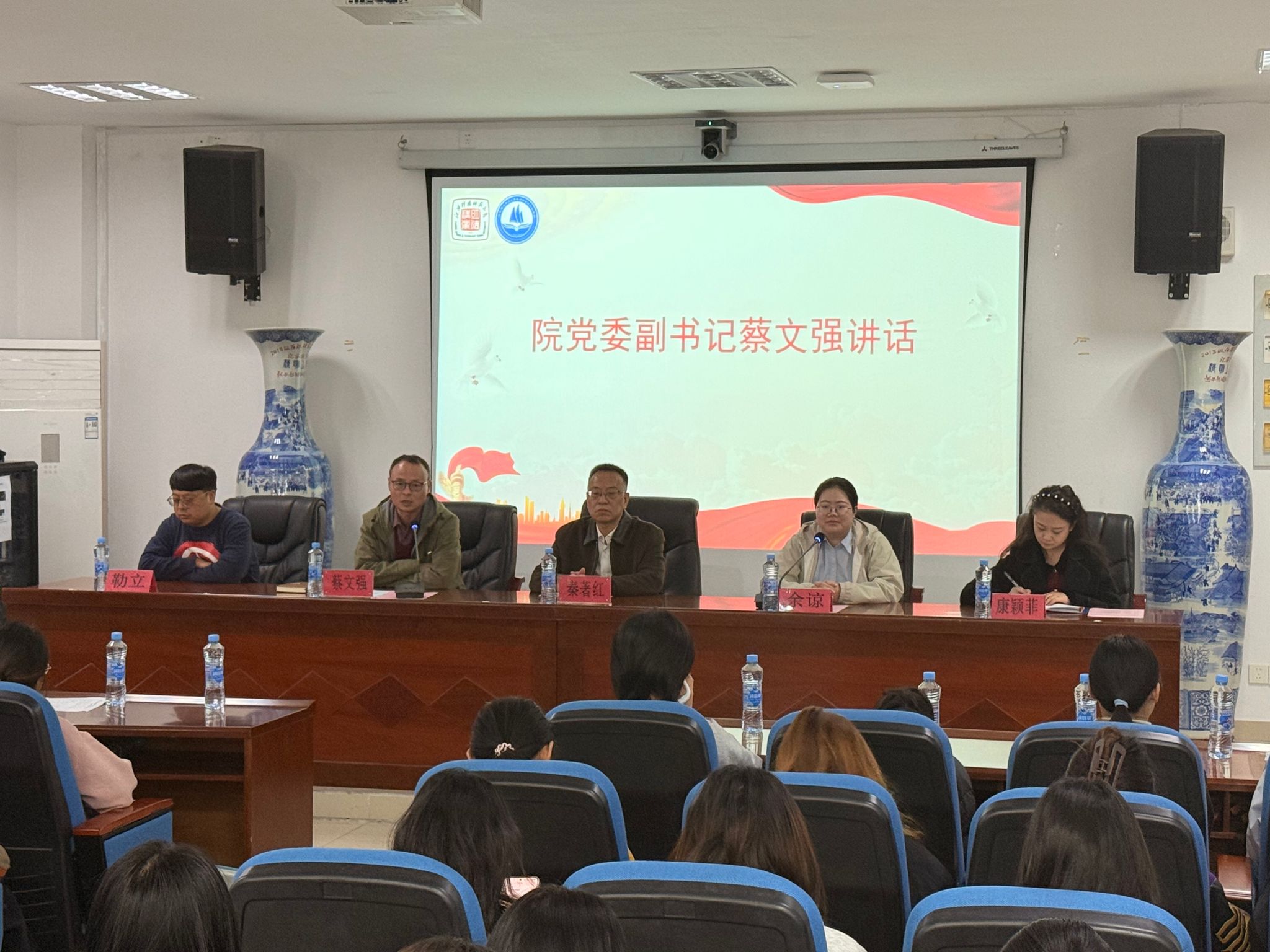 院党委副书记蔡文强作动员讲话。他指出,此次活动是学院学生党务服务中心以党建促学风,发挥学生党员、入党积极分子、共青团员的先锋示范引领作用,为广大学生办实事的具体体现。活动既实现了知识的精准传递,更搭建了心灵沟通的桥梁。培训班将以高等数学和大学英语两门较难科目为帮扶重点,在学习成绩较好的党员、入党积极分子的帮助下,学业困难学生将获得学业帮扶,促进学院优良学风建设迈上新台阶。
