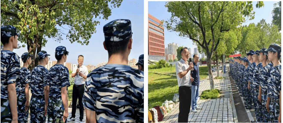 在军训场地,秦著红对同学们在高温考验下始终保持昂扬的精神面貌、认真刻苦的训练态度给予了高度肯定。秦著红强调,军训是大学生涯中意义非凡的“第一课”,也是新生国防教育的具体体现。军训不仅能够锤炼大家的身体素质、强健体魄,更能磨砺坚韧不拔的意志品质,培养团结协作的集体精神。秦著红勉励同学们要倍加珍惜此次军训机会,以严格的标准要求自己,坚决服从教官的指挥,勇于克服训练中的困难与挑战,圆满完成各项军训任务,为即将开启的大学生活奠定坚实的基础。蔡文强贴心叮嘱同学们,在高强度训练之余要注意劳逸结合,做好防暑措施,确保以健康的体魄投入到军训中。