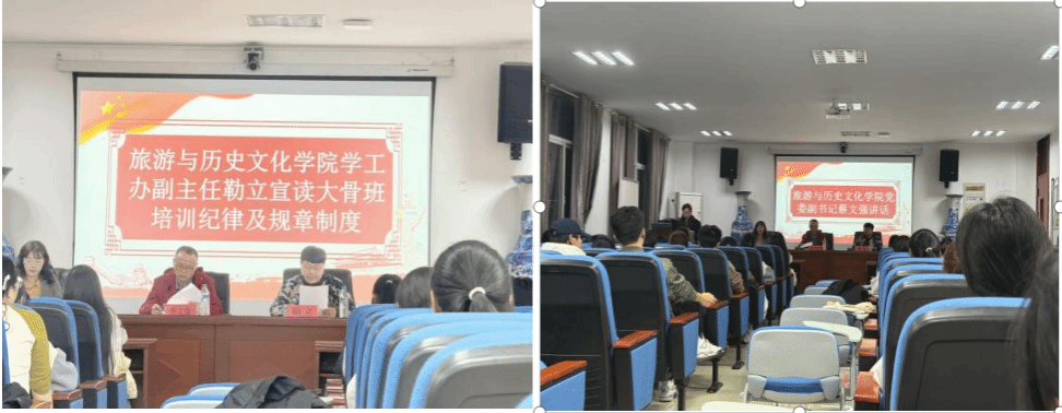 为切实加强学生骨干队伍建设,提升学院学生干部的综合素质与履职能力,10月12日晚,旅游与历史文化学院在W2317学术报告厅举办第四期“鄱阳红”大学生骨干培训班开班仪式。学院党委副书记蔡文强、学工办副主任勒立、团委副书记孙子淇及培训班全体成员参加。