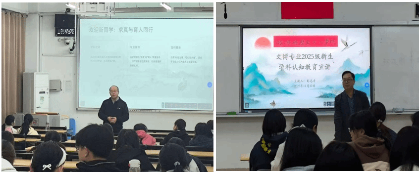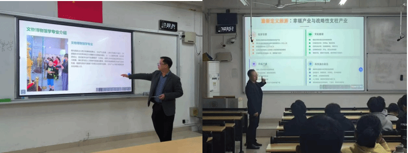 专业认知教育讲座作为新生接触专业的“启蒙课”,各系老师化身“引路人”,用细致讲解为新生勾勒学科框架,奠定专业学习基础。酒店管理系宋佳星博士从行业发展趋势切入,全面介绍了酒店管理专业的核心内容与职业发展路径;文物与博物馆学系杨青林博士带领新生走进文博领域的实践场景,让抽象的专业概念变得可感可知;旅游管理系杨帆博士和历史学系赵建成博士围绕文旅融合背景,解读专业培养目标与历史学科的研究脉络。一场场干货满满的分享,帮助新生从“陌生”迈向“清晰”。