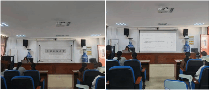 讲座围绕“文明礼仪在个人成长、人际交往与职业发展中的重要意义”展开。陈慧从“不学礼,无以立”的传统文化理念切入,结合旅游管理与历史文化专业特色,系统讲解了文明礼仪的核心内容。她重点介绍了仪容仪表、言谈举止、社交礼仪及公共场合行为规范,并通过典型案例分析,帮助学生理解大学生应具备的文明素养和行为规范。