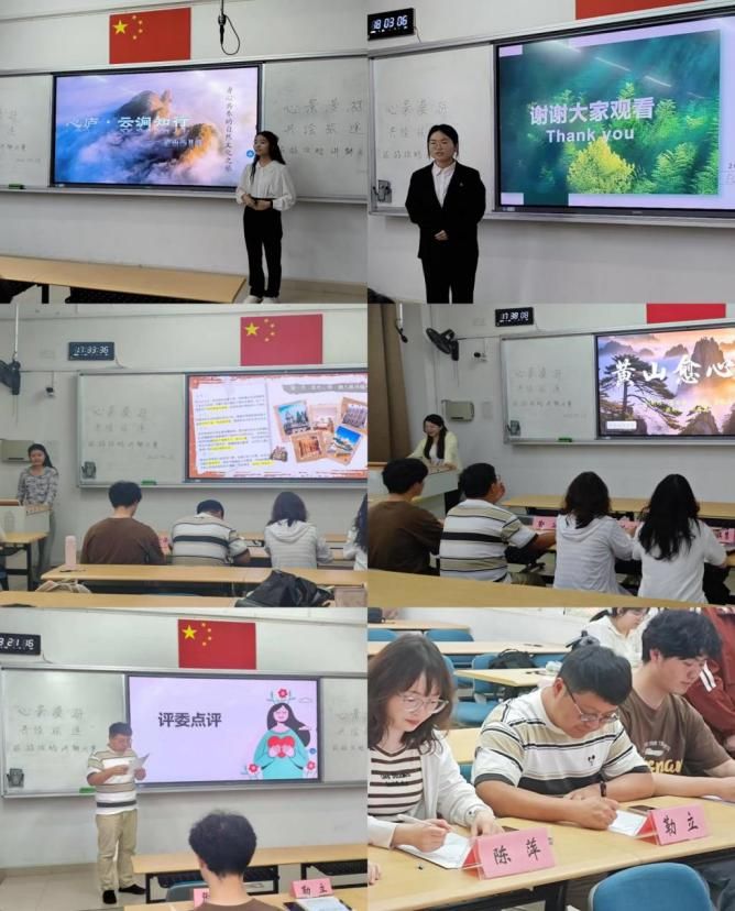 决赛现场,气氛火热。各参赛队伍通过声情并茂的演讲、精美的视觉呈现与创新的互动设计,诠释旅途中的心灵疗愈力量。围绕“心理健康与旅行”主题,设计出兼具专业性与人文关怀的旅游攻略和路线。