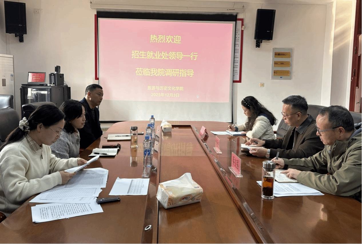 12月3日,招生就业处处长余薇、副处长戈国华和就业管理科副科长魏沙沙一行莅临旅游与历史文化学院调研指导就业工作。学院党委书记秦著红代表学院对余薇一行的到来表示欢迎和感谢,并介绍了学院就业工作开展情况及取得的成效。学院党委副书记蔡文强就当前就业工作中存在的基层就业引导、用人单位资源拓展、激励机制落实等难点问题进行了梳理汇报。