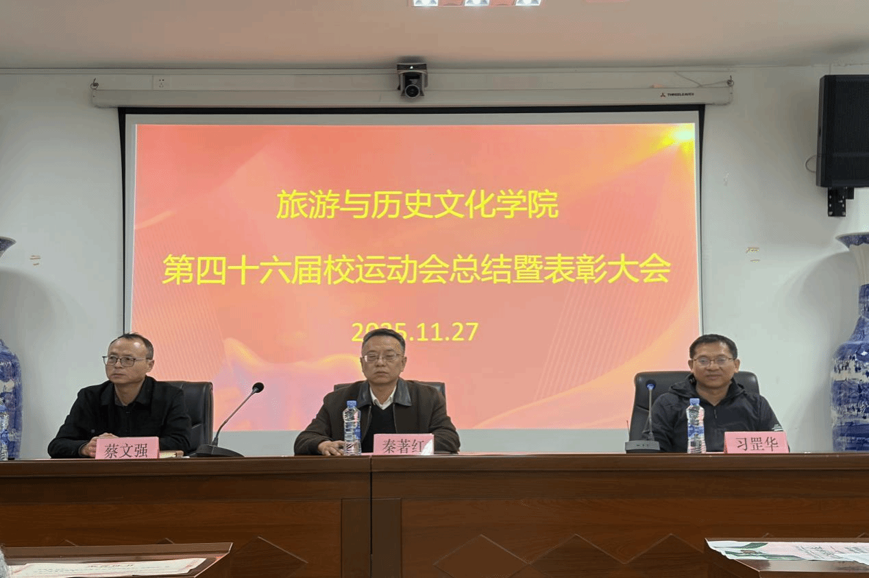 为表彰在第46届校运动会中奋勇拼搏的运动员和辛勤付出的工作人员,进一步增强学院学子的凝聚力,11月27日晚,旅游与历史文化学院在W2317会议室召开第46届运动会总结暨表彰大会。学院党委书记秦著红、院长习罡华、党委副书记蔡文强、团委副书记孙子淇出席会议。本次运动会参赛运动员、工作人员及各班班长、团支书参加会议。