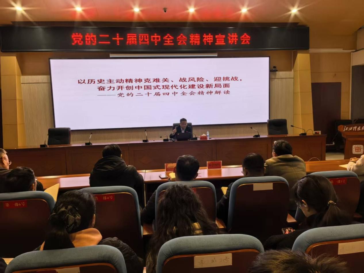 为深入贯彻落实党的二十届四中全会精神,有力推动全会精神在基层落在实处,12月23日,江西科技师范大学校党委委员、副校长吴志远面向经济管理与法学院和旅游与历史文化学院师生开展专题宣讲活动。此次宣讲活动由旅游与历史文化学院党委书记秦著红主持,220余名师生代表积极参与。