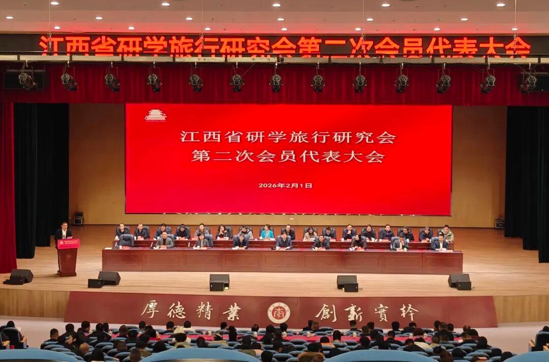 2026年2月1日上午,江西省研学旅行研究会第二次会员代表大会在南昌医学院召开。旅游与历史文化学院作为研究会副会长单位,由学院党委副书记蔡文强,副院长、研究会副会长李志强教授带队,学院教师代表参会。