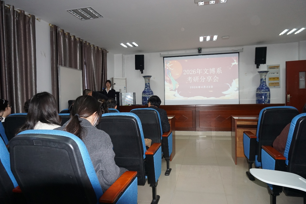 4月23日晚,我院在W2317会议室成功举办2026年文博系考研分享会。学院院长习罡华、副院长张澜、彭志才莅临现场,会议由24级文物与博物馆学专业本科生饶文静主持,文博系专任教师、22级文博专业辅导员及23、24、25级文博专业本科生齐聚一堂,共赴一场浸润文博情怀、点亮考研征途的经验盛宴。