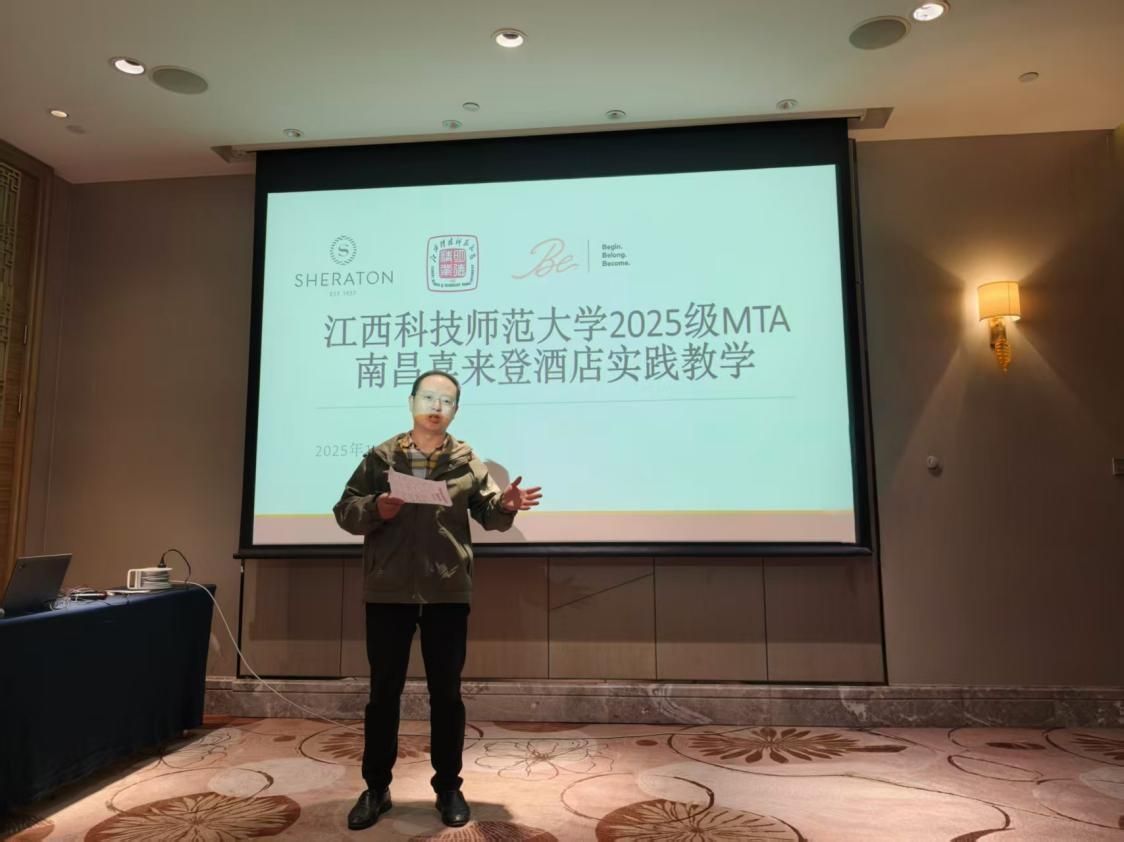 为推进省级研究生优质课程《服务管理》的校企共育模式创新,提升研究生实践能力,近日,在李志强副院长的带领下,我校2025级旅游管理专业的9名研究生走进南昌喜来登酒店,开展了一堂沉浸式案例教学实践课。