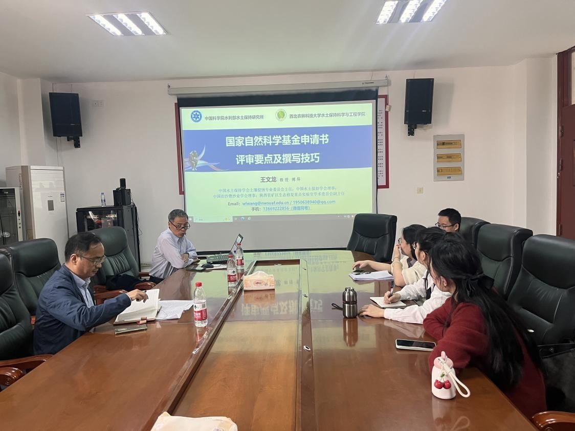 讲座在文科楼W2315举行,王文龙教授系统解读了国家自然科学基金申请书的评审要点、撰写技巧及国家基金评审的形势等,并指出专家评审关注的核心是申报项目的科学价值和创新性。