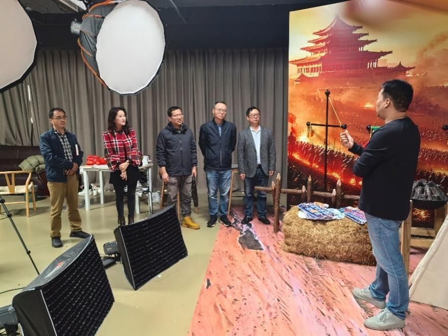 总经理熊敏、副总经理涂序澄带领下,习罡华院长一行实地考察了企业新媒体直播间、数字化内容创作中心等核心功能区。